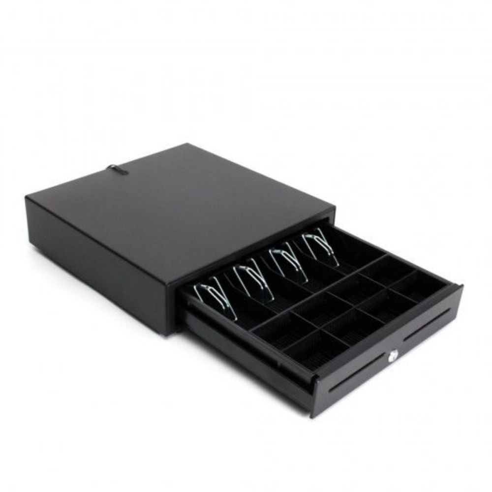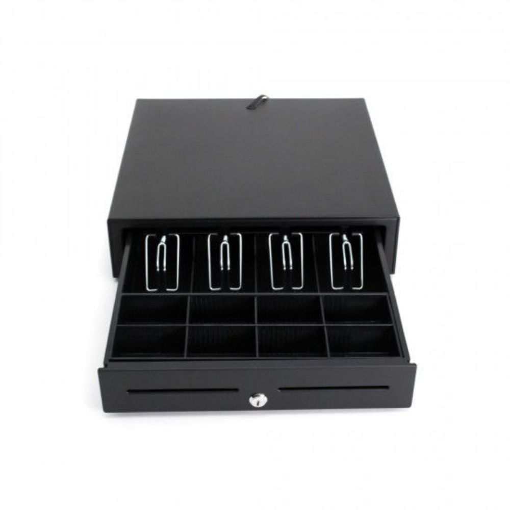 Μεταλλικό συρτάρι εισαγωγής με 4 θέσεις χαρτονομισμάτων και 8 θέσεις κερμάτων. Συνδέεται με εκτυπωτή κουζίνας. Διαθέτει κλειδαριά 3 θέσεων (Ανοίγει – Κλειδώνει). Διαστάσεις: (Π) 405 x (Μ) 415 x (Υ) 100 mm